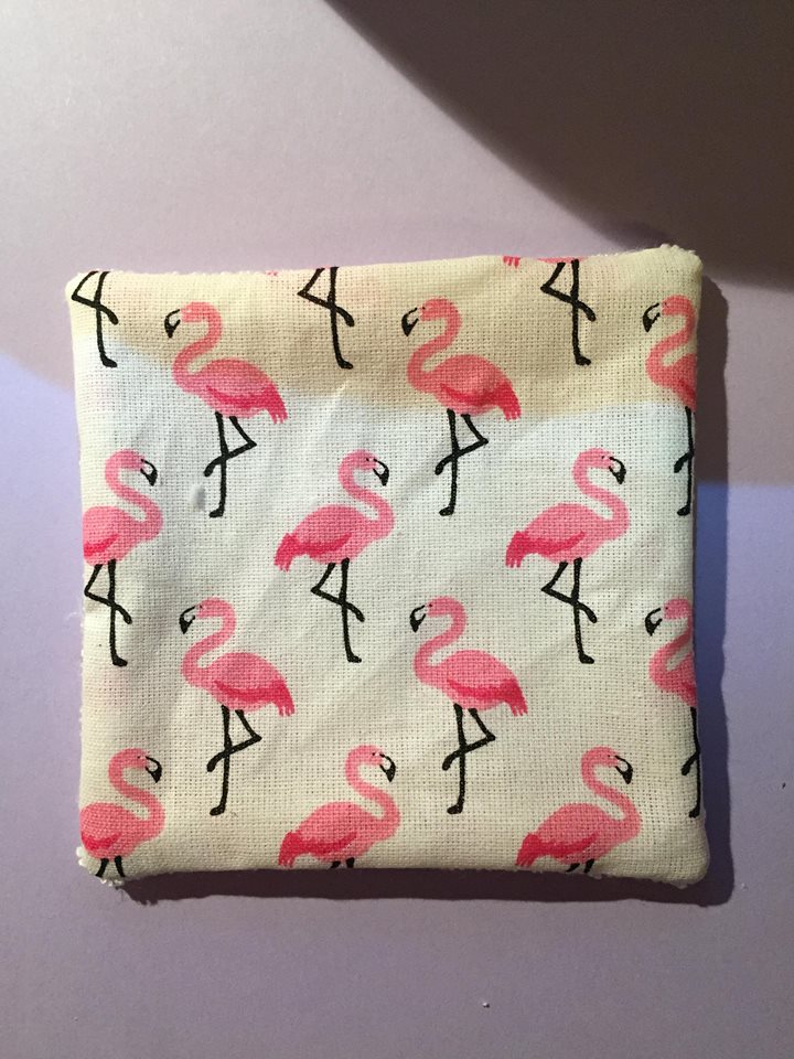Pour commencer, découper le nombre de carrés que vous voulez dans le tissu en coton et dans l'éponge en bambou.