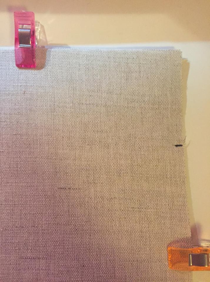 Piquez ensuite le bas du tissu, puis le côté gauche.